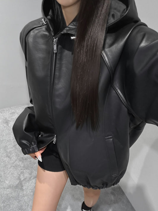 kera hoodie leather jumper (pre-order)