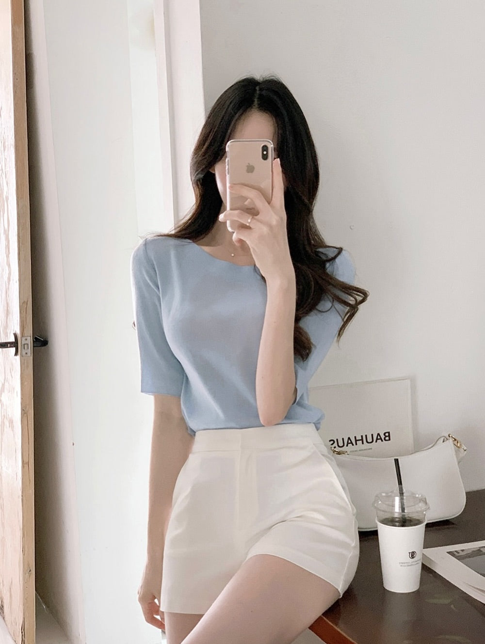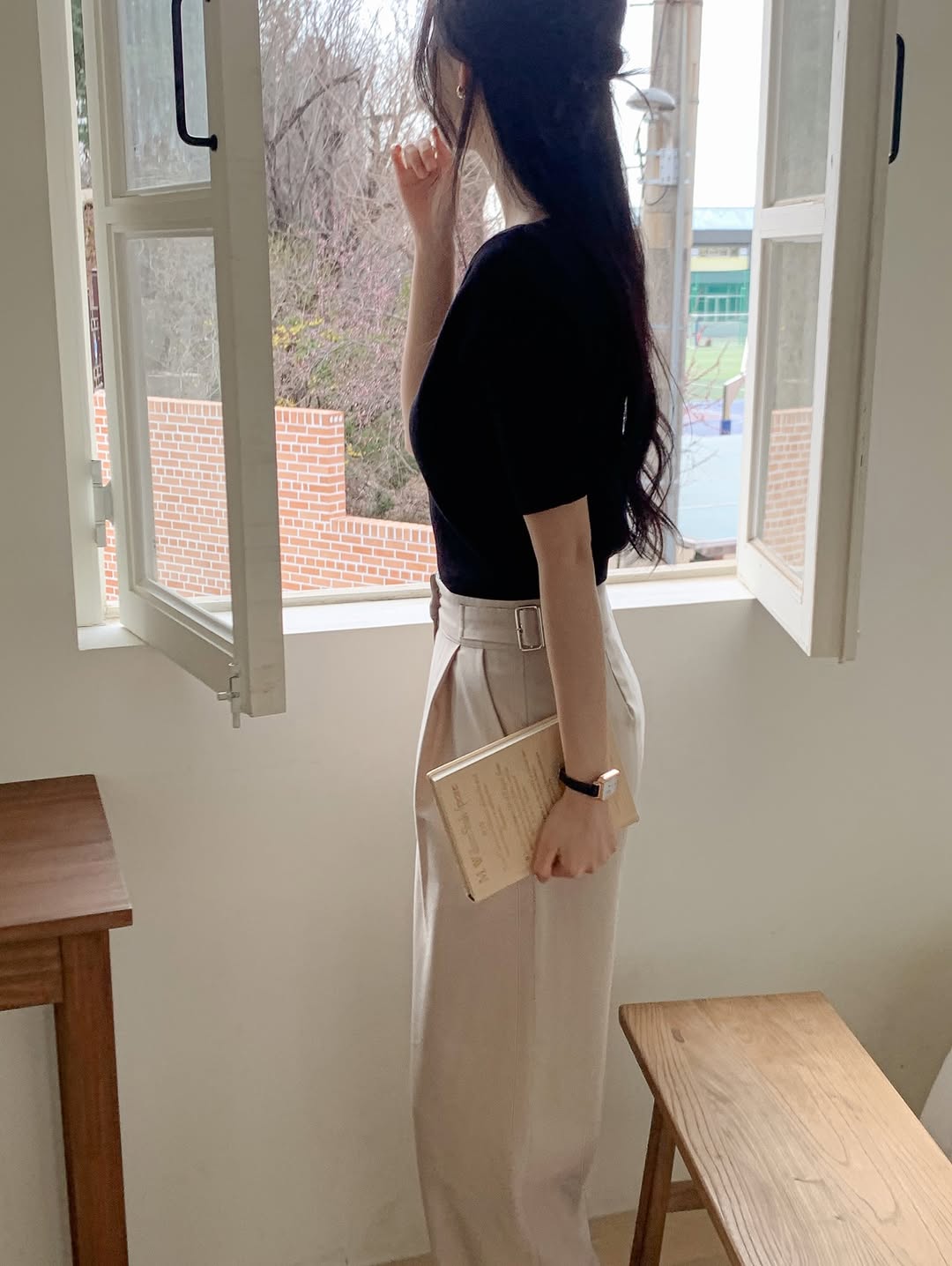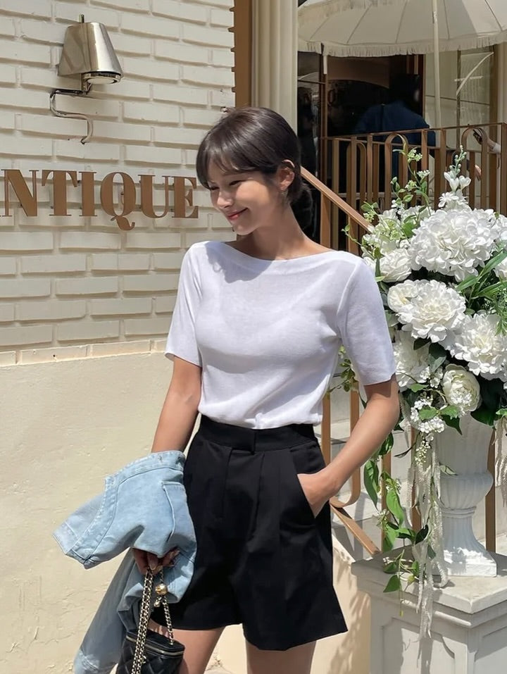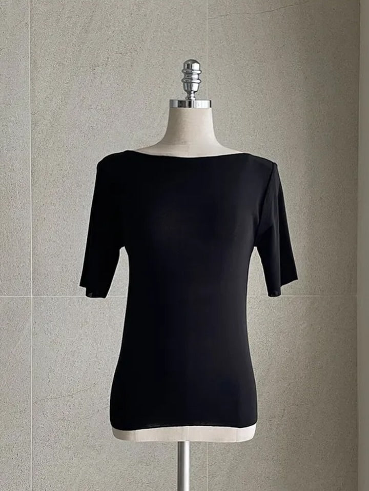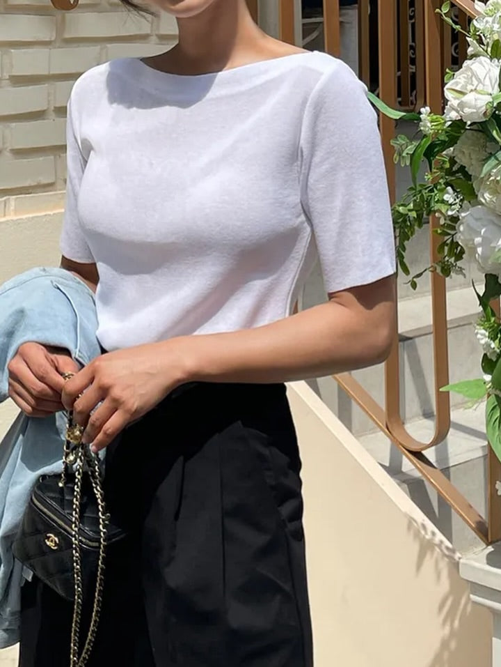 • This knit top was one of last summer's bestsellers, and due to so many requests, it's finally back this year. It's a versatile piece that pairs beautifully with any clean, classic style—perfect for work or a date look. The gentle boat neckline adds a subtle feminine touch, and I love how it gives a soft, delicate