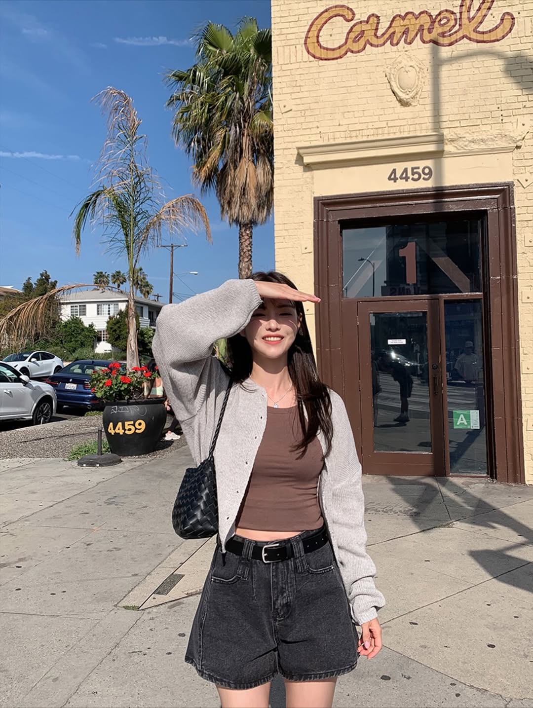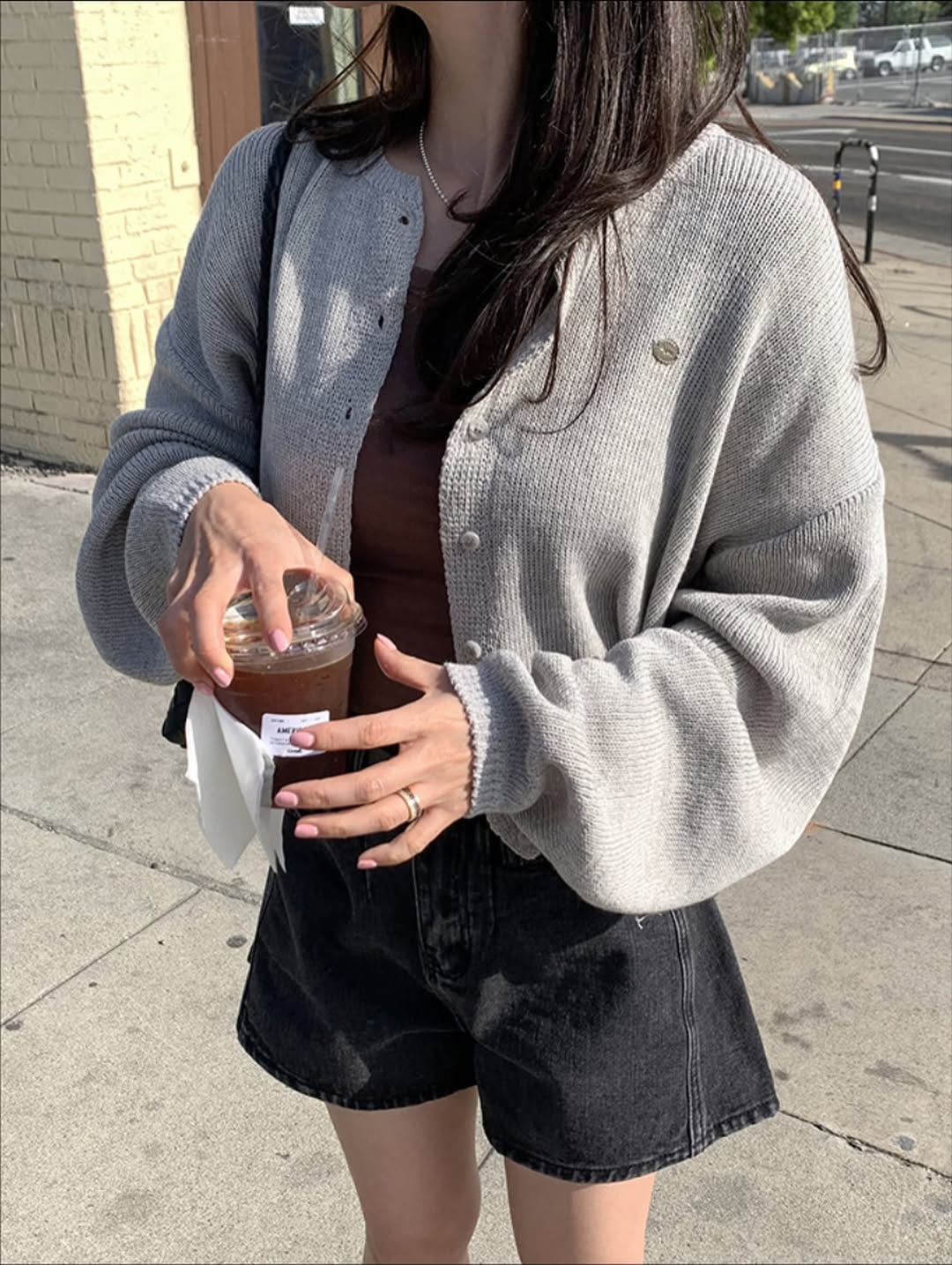 Made in our signature loose, relaxed silhouette. The round neckline keeps it clean and minimal, and the loose shape with dropped shoulders creates a soft balloon effect that naturally covers the upper body and gives a gentle, feminine look. The cropped length sits just above the hips,
