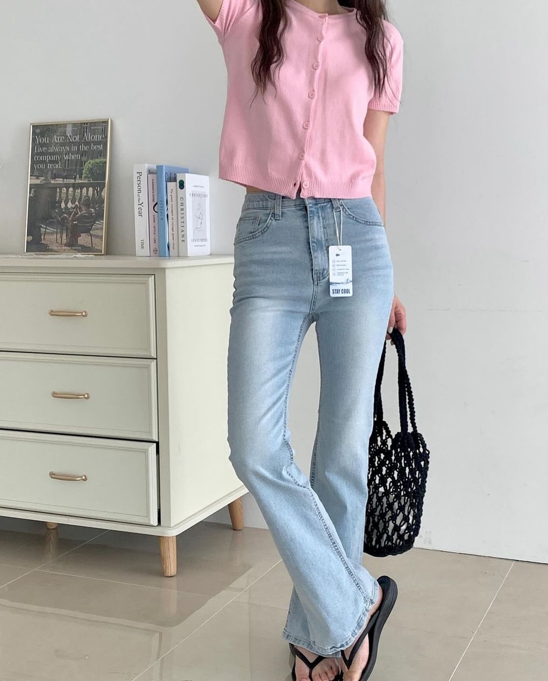 These high-waisted summer jeans are made from lightweight, breathable cotton denim. The 100% denim material offers a great fit, while the trendy front pockets add a stylish touch. The wide-leg design is comfortable and easy to move in, with a flattering waistline that’s perfect for pairing with just a simple t-shirt for a fresh, effortless summer look.