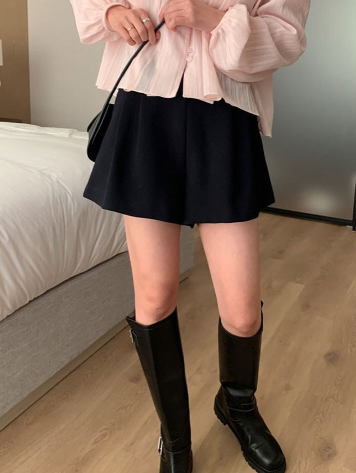 Thinking about your lower body silhouette? Our pleated flare shorts are a must-try. Wide pants aren’t the only answer — these shorts give you a fresh way to flatter your legs.
