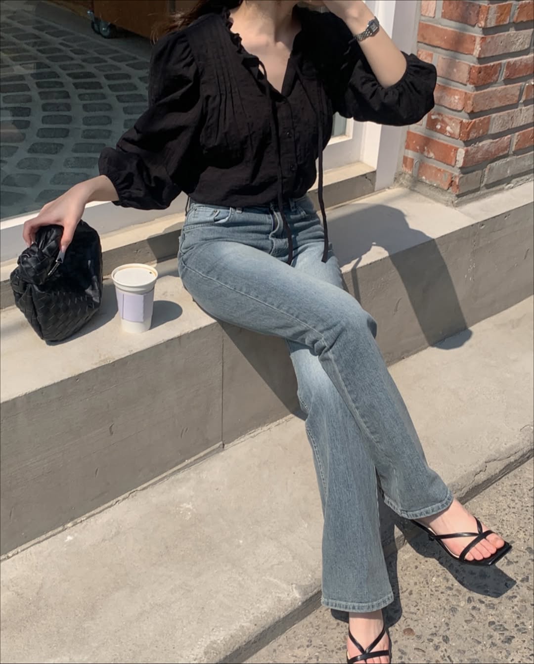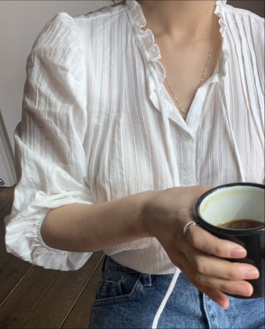 • This blouse is a one of our top-selling item from last year. Its a stylish and feminine design that has become very popular, leading to many copycat versions. But, this original version is made with quality cotton materials and features delicate pin tuck details and a flirty ruffle design.