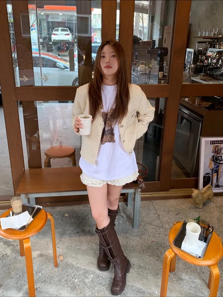Best seller from last pre-orders. The cutest printed tee 🤍 I’m really picky with t-shirts, but this one stole my heart! It has that perfectly oversized fit — long, roomy, and super comfy. Great as loungewear, a couple tee, or even styled casually for everyday. Even guys can pull it off effortlessly! For me, rolled up the sleeves a few times and it looked even cuter. When worn loose, the sleeves fall around 3/4 length, so it’s also perfect if you prefer a relaxed fit around the arms. An easy, versatile oversized tee you’ll keep reaching for