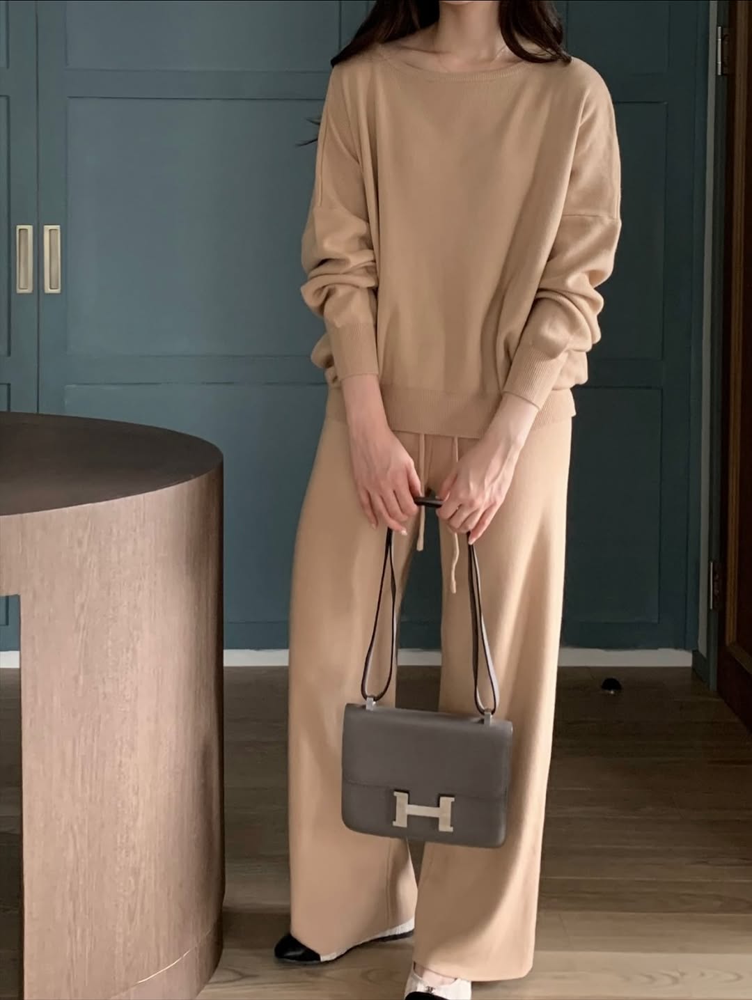 • Top: Drop-shoulder design with a loose fit that naturally flatters the body. Clean finishing at the hem and cuffs keeps the silhouette neat.