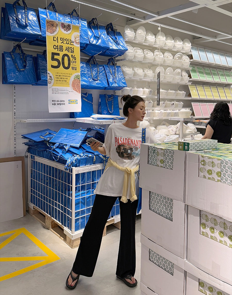It has that perfectly oversized fit — long, roomy, and super comfy. Great as loungewear, a couple tee, or even styled casually for everyday. Loose fit gently flatters your shape, and rolling up the sleeves adds an easy, casual vibe.