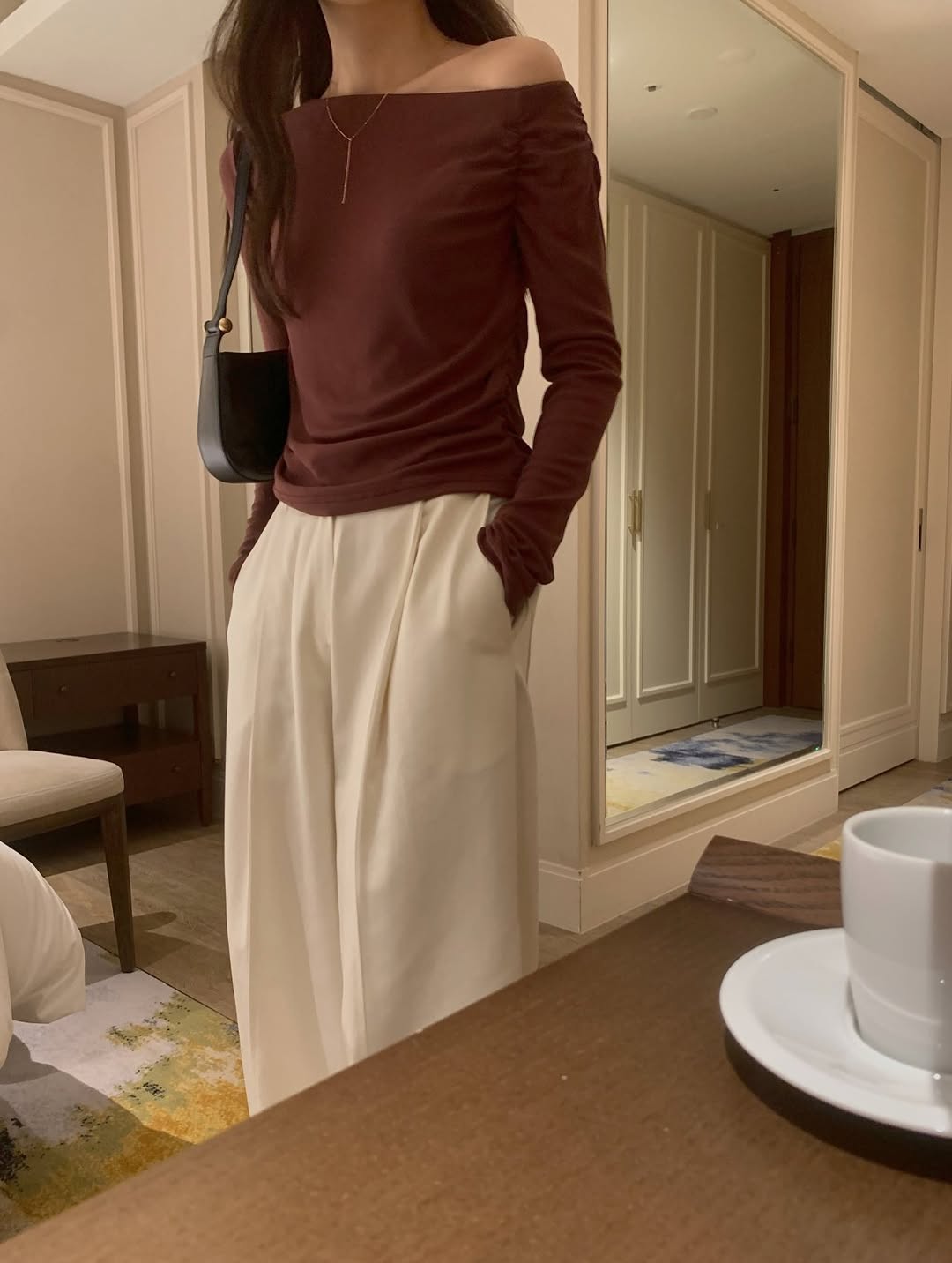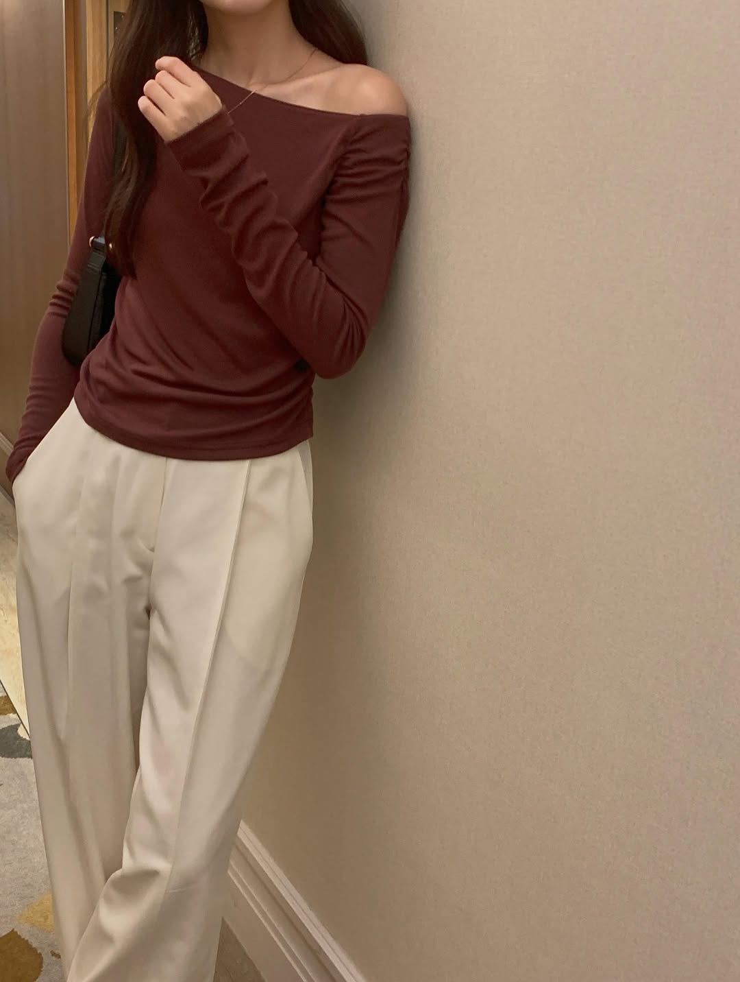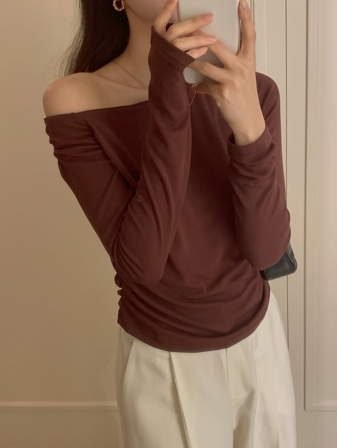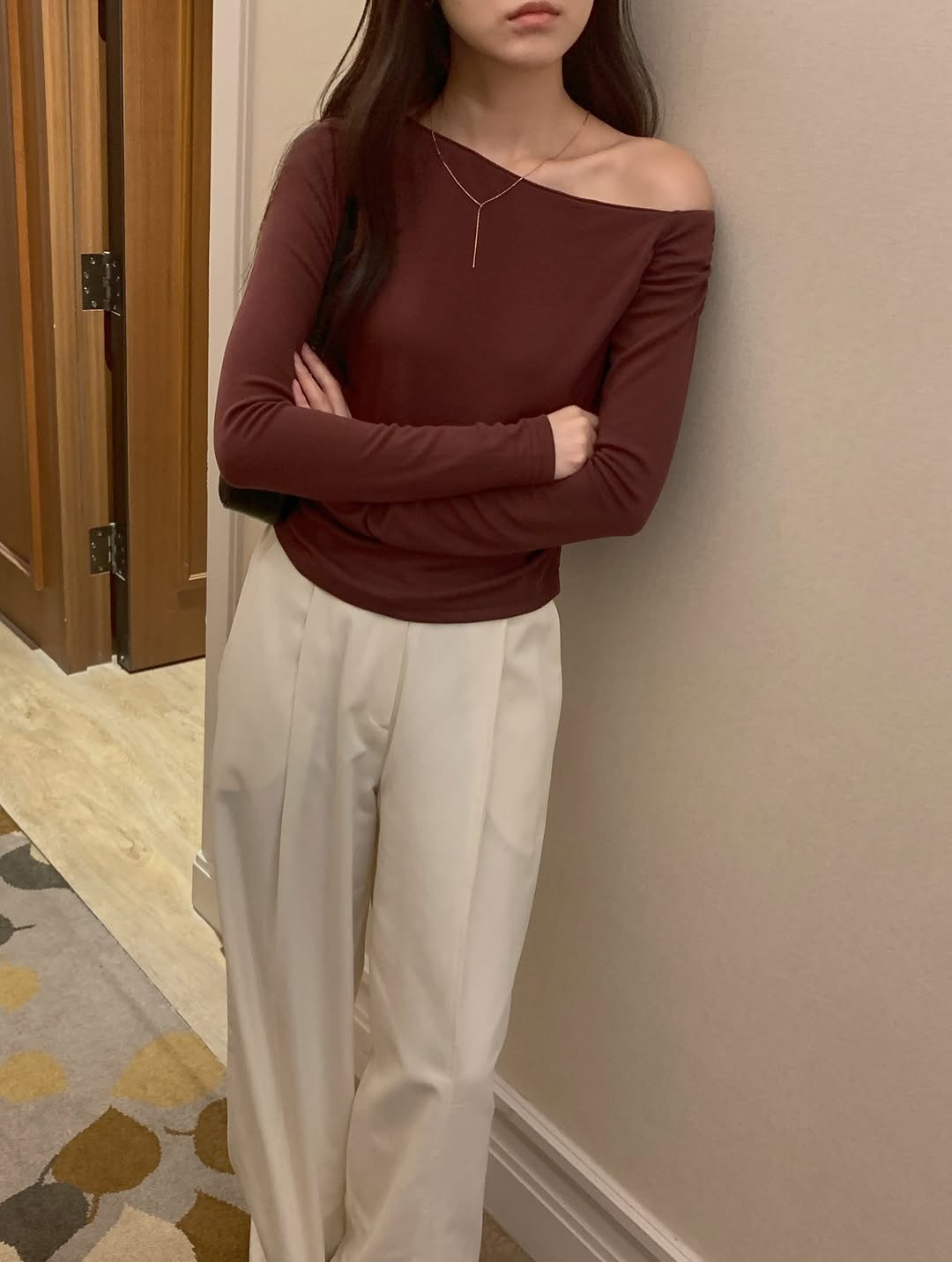 Soft and feminine for new season. This asymmetrical tee features a one-shoulder off-shoulder design — perfect even if you’re new to the style. Detailed banded shirring at the shoulder and waist adds shape, while the stretchy fabric keeps it effortlessly comfortable.
