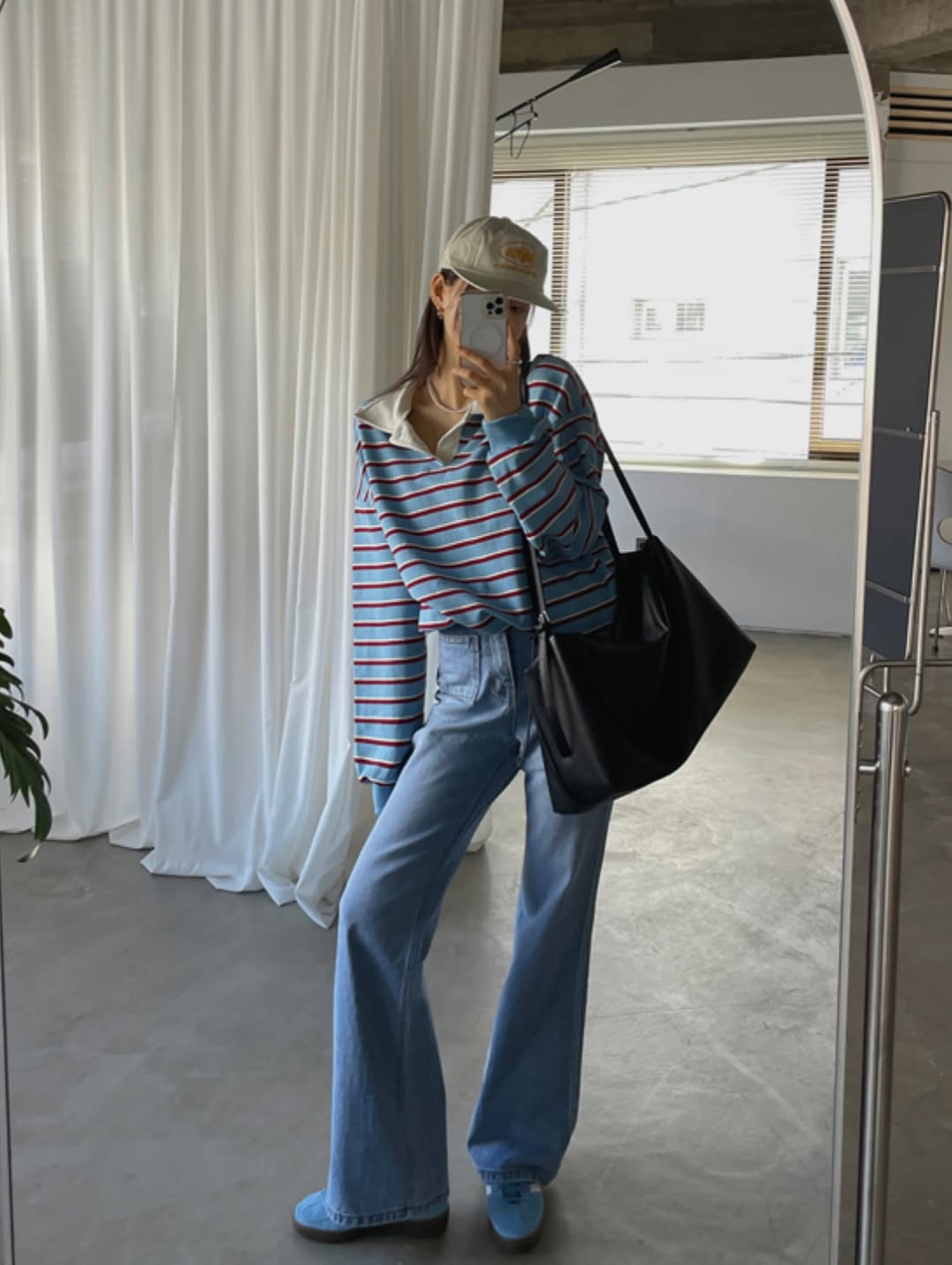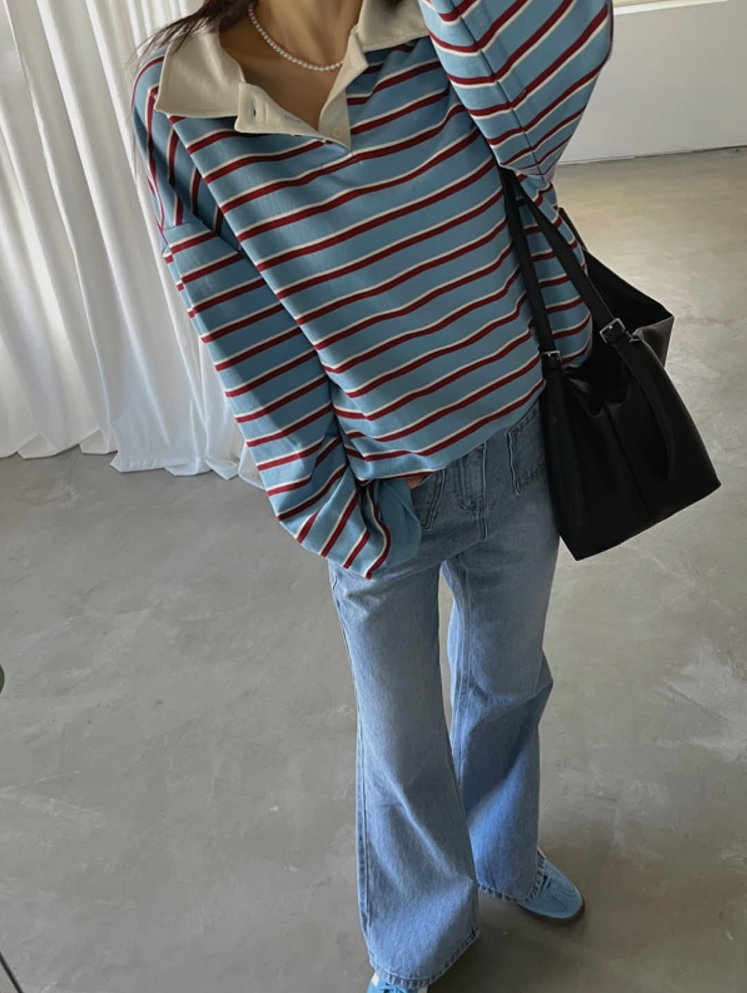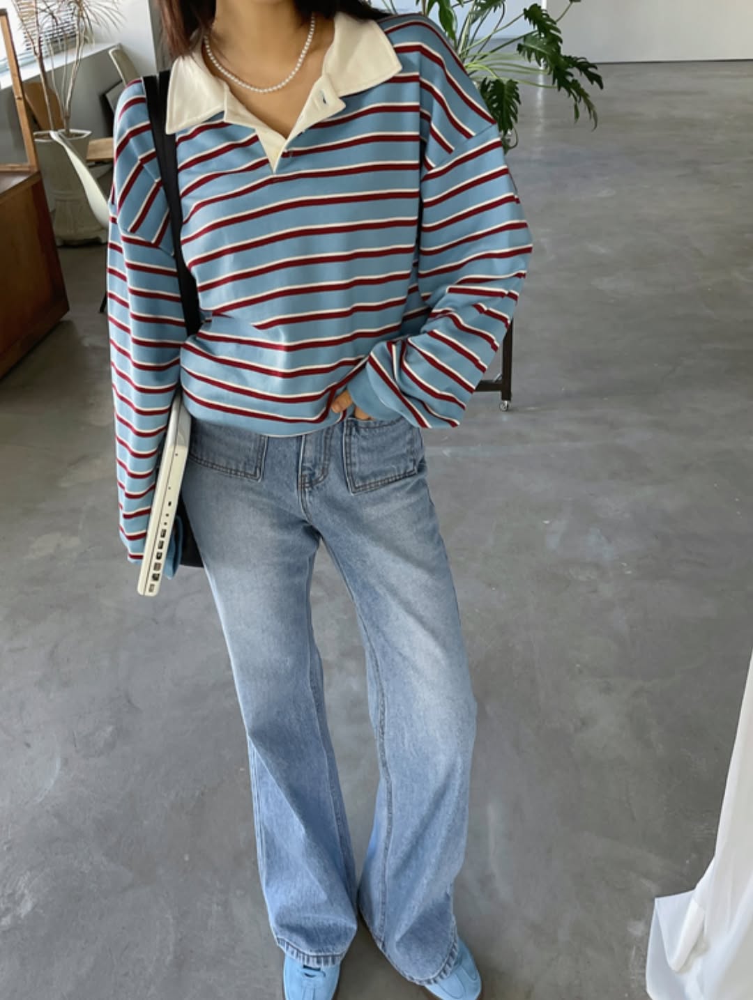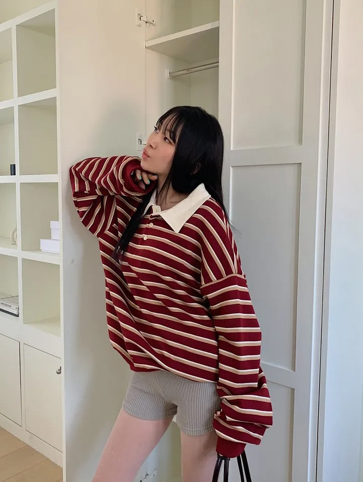 Its one of my fave striped top in fall season. This oversized striped collared tee has been a favorite among many. With its hip-covering length, it pairs well with a variety of bottoms, and the loose fit makes it great for flattering any body shape. The vibrant colors and classic stripe pattern add a nice touch of style, while the rugby-inspired design brings a trendy, sporty vibe.