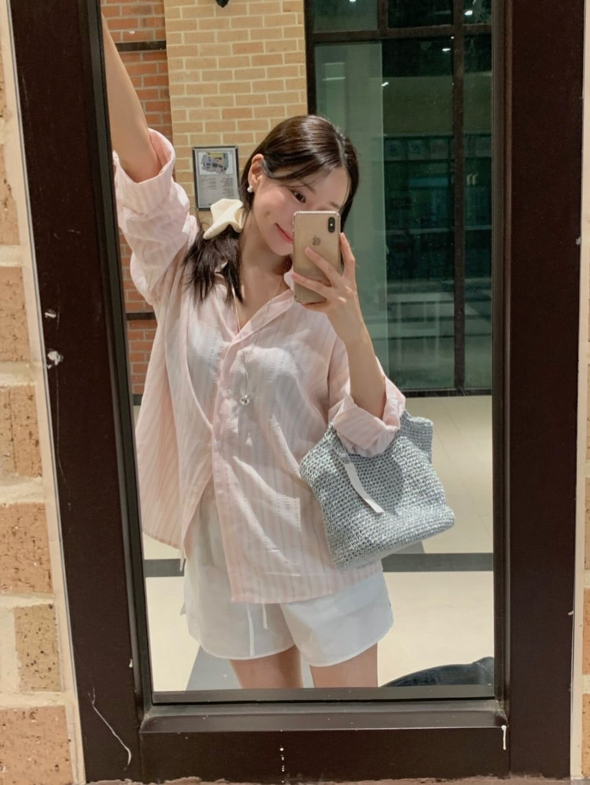 Fresh, cool colors with a relaxed fit that's easy for everyone to wear. It goes well with any bottoms and can be styled in many ways for different looks. Made from a tencel and cotton blend, it feels soft and comfortable. Looks great worn buttoned up or open. Easy, comfy, and perfect as a simple statement piece 🤍