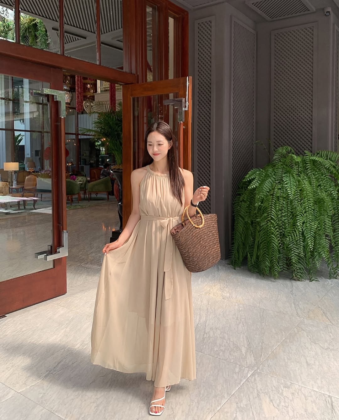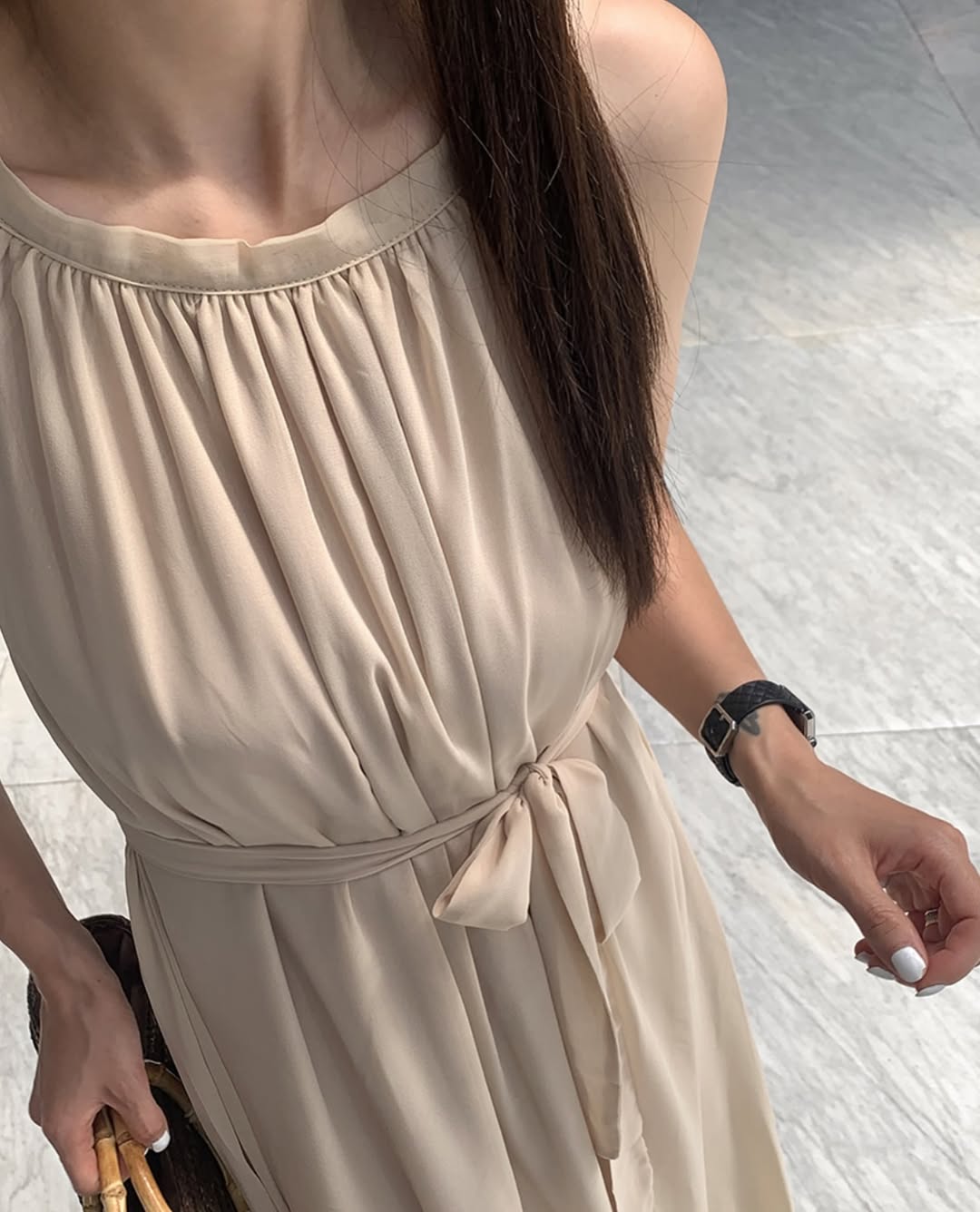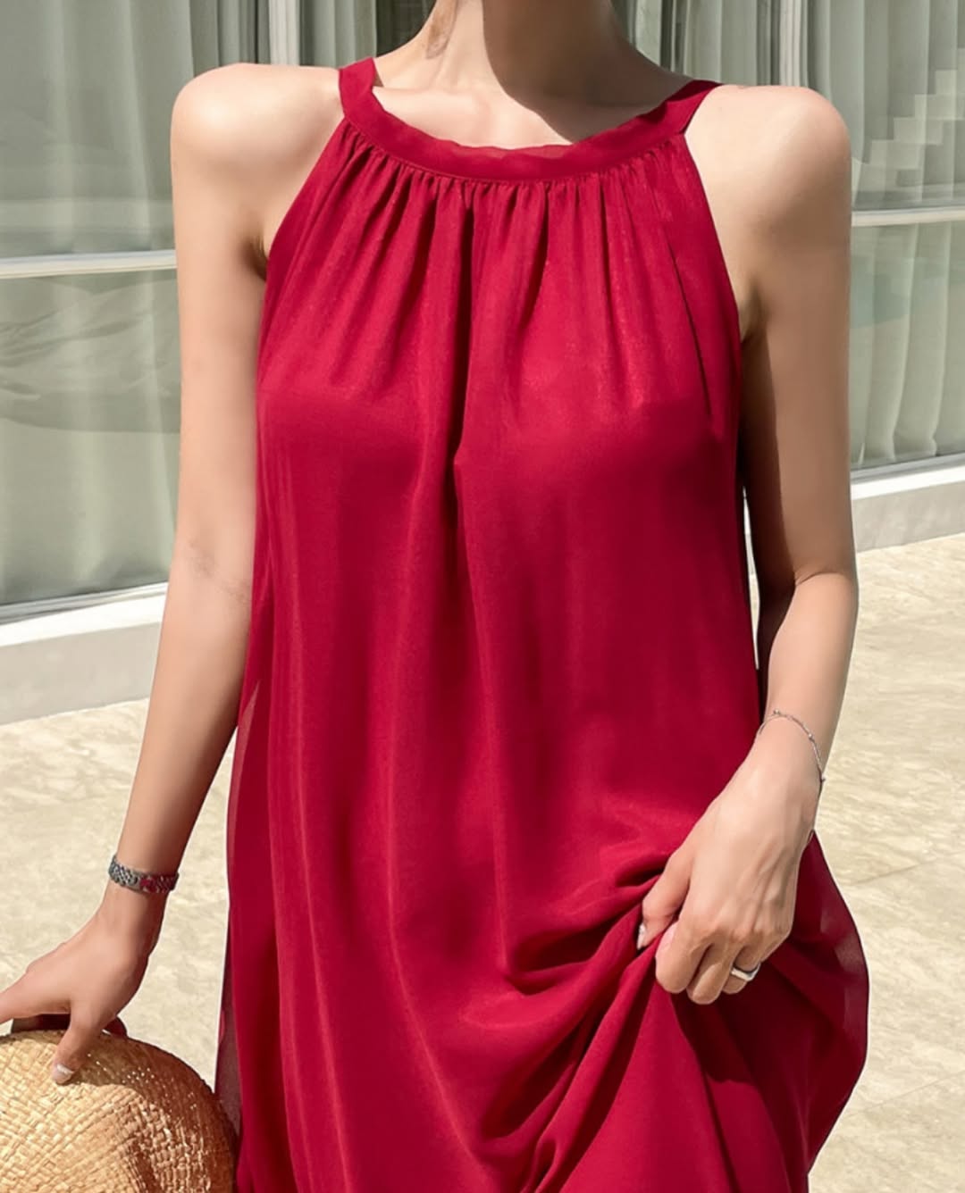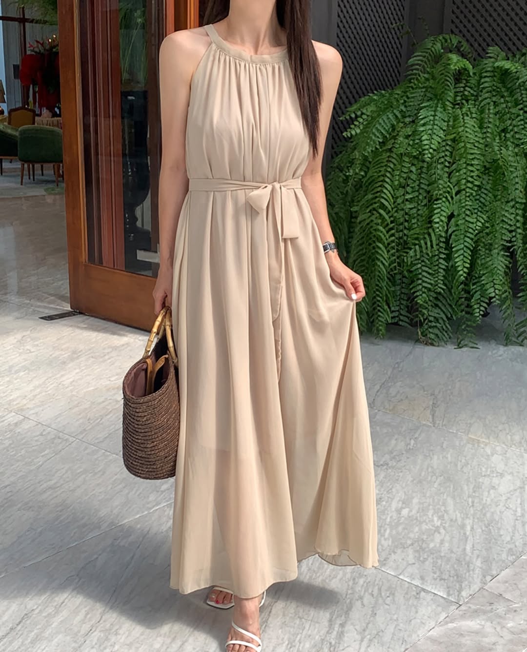 This dress is made from a lightweight chiffon fabric that flows beautifully, whether you’re walking or caught in the breeze. It comes with a matching chiffon belt, which you can use to define the waist for a more feminine look. Alternatively, wear it without the belt for a natural, relaxed flare silhouette. Highly recommended for its versatility and elegance!