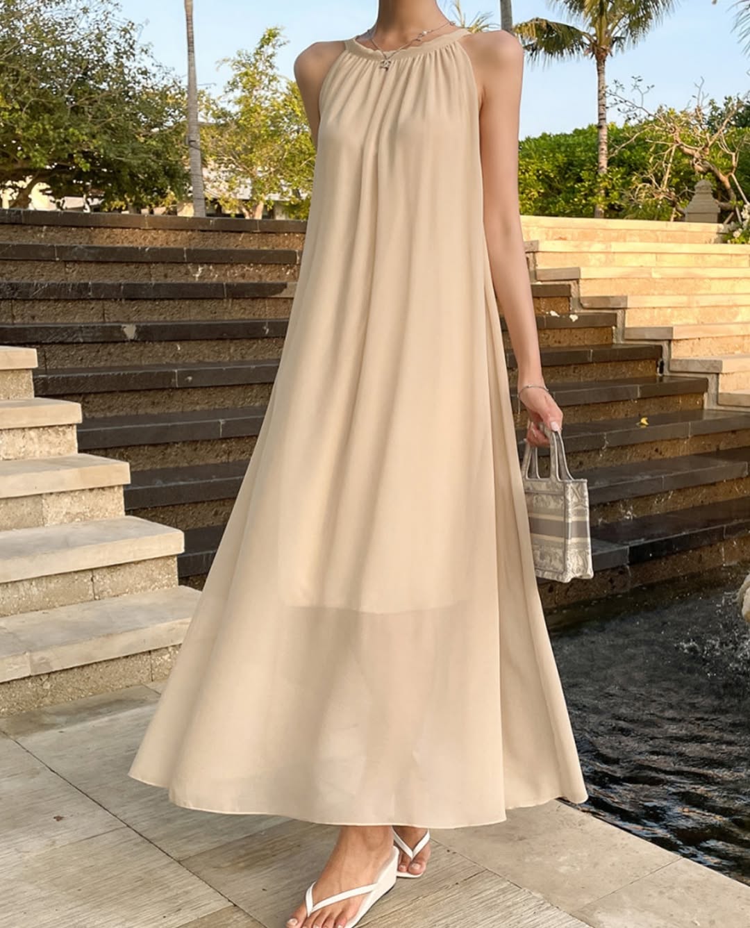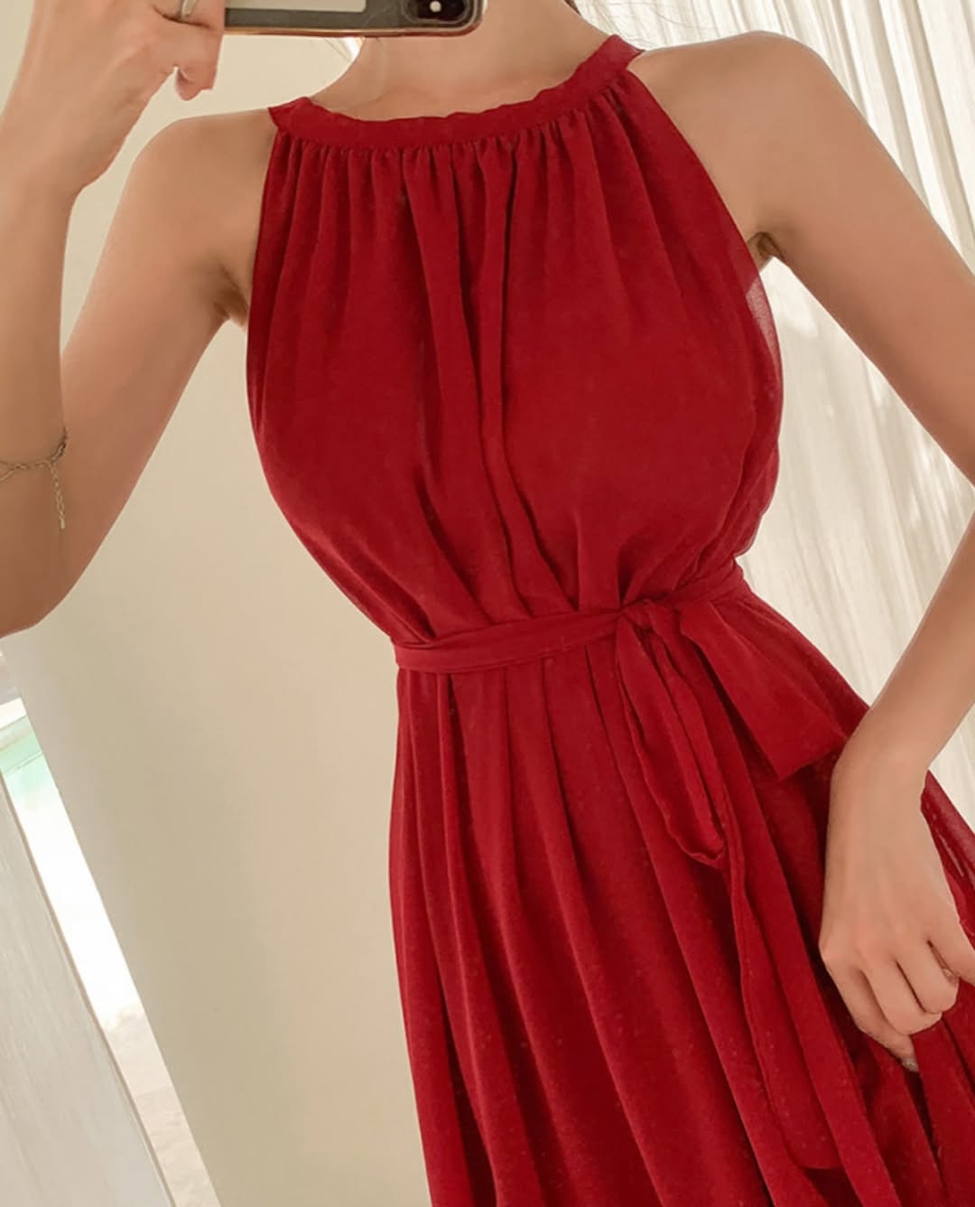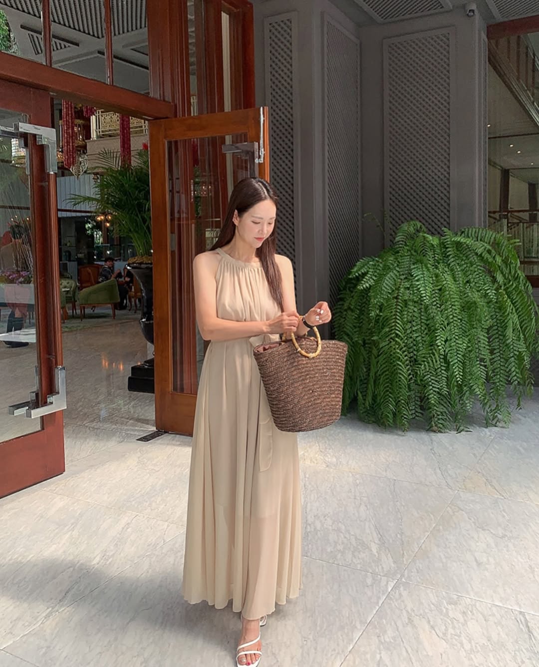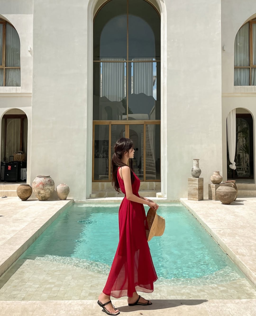 This dress is made from a lightweight chiffon fabric that flows beautifully, whether you’re walking or caught in the breeze. It comes with a matching chiffon belt, which you can use to define the waist for a more feminine look. Alternatively, wear it without the belt for a natural, relaxed flare silhouette. Highly recommended for its versatility and elegance!