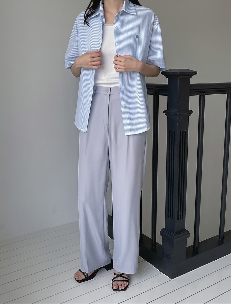 A simple yet timeless short-sleeve shirt with subtle embossing and stripe details 🤍 Lightweight and breezy for summer ! Its perfect on its own or thrown over as an easy outer layer. The fabric barely wrinkles and is super low-maintenance, so it's one of those pieces you'll reach for all season long