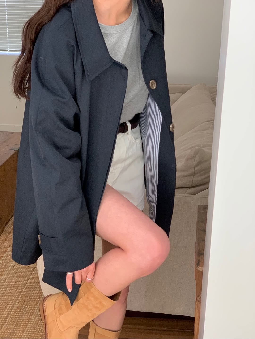Back by popular demand this season 🩵 a minimal yet stylish half trench jacket. Crafted from a soft yet structured cotton blend, it features a hidden-button front and clean side pockets for a refined finish. With its relaxed, loose silhouette and half length, it’s the perfect piece for a simple, stylish daily look.