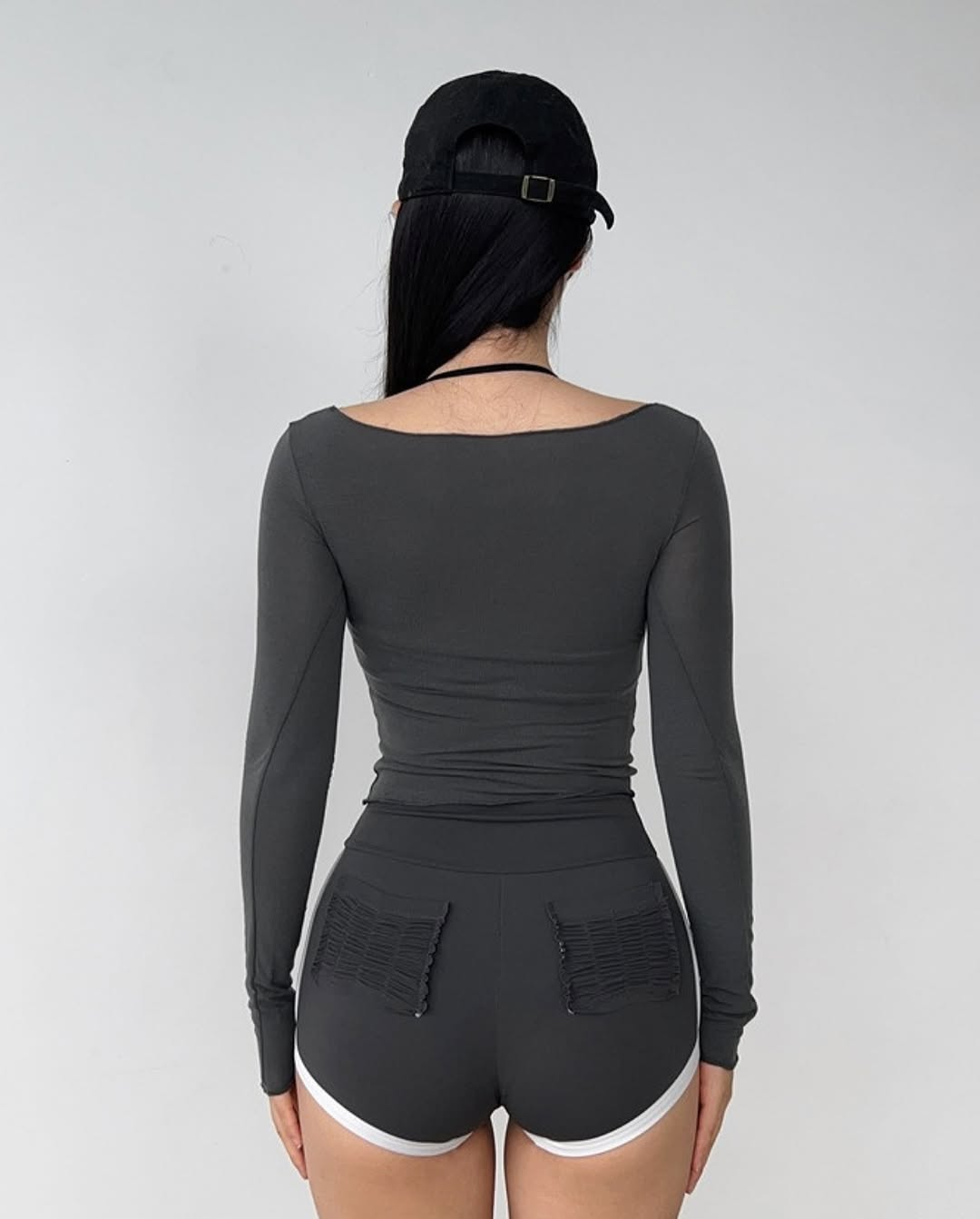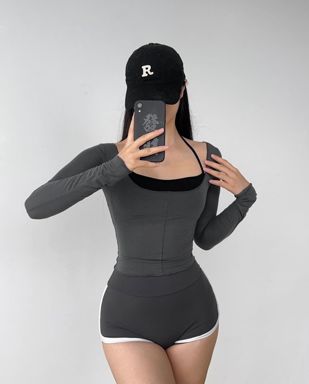This set includes a bra top and long sleeve top, making it a super versatile piece! Made from a stretchy and comfortable fabric, it’s great for Pilates or everyday wear. The bold neckline subtly adds a touch of sexiness, showing just the right amount of the layered tank. It features long sleeves with a slim fit that flatters the body, and the front seam detail adds a stylish touch.